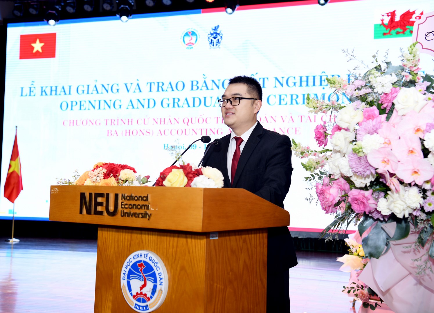 Phát biểu tại buổi lễ, TS. Mukul Madahar – Phó Trưởng khoa phụ trách Hợp tác, Đại học Cardiff Metropolitan (Vương quốc Anh) bày tỏ niềm tự hào khi các sinh viên khóa 8 của Chương trình đã xuất sắc hoàn thành hành trình học tập để trở thành những tân cử nhân quốc tế.