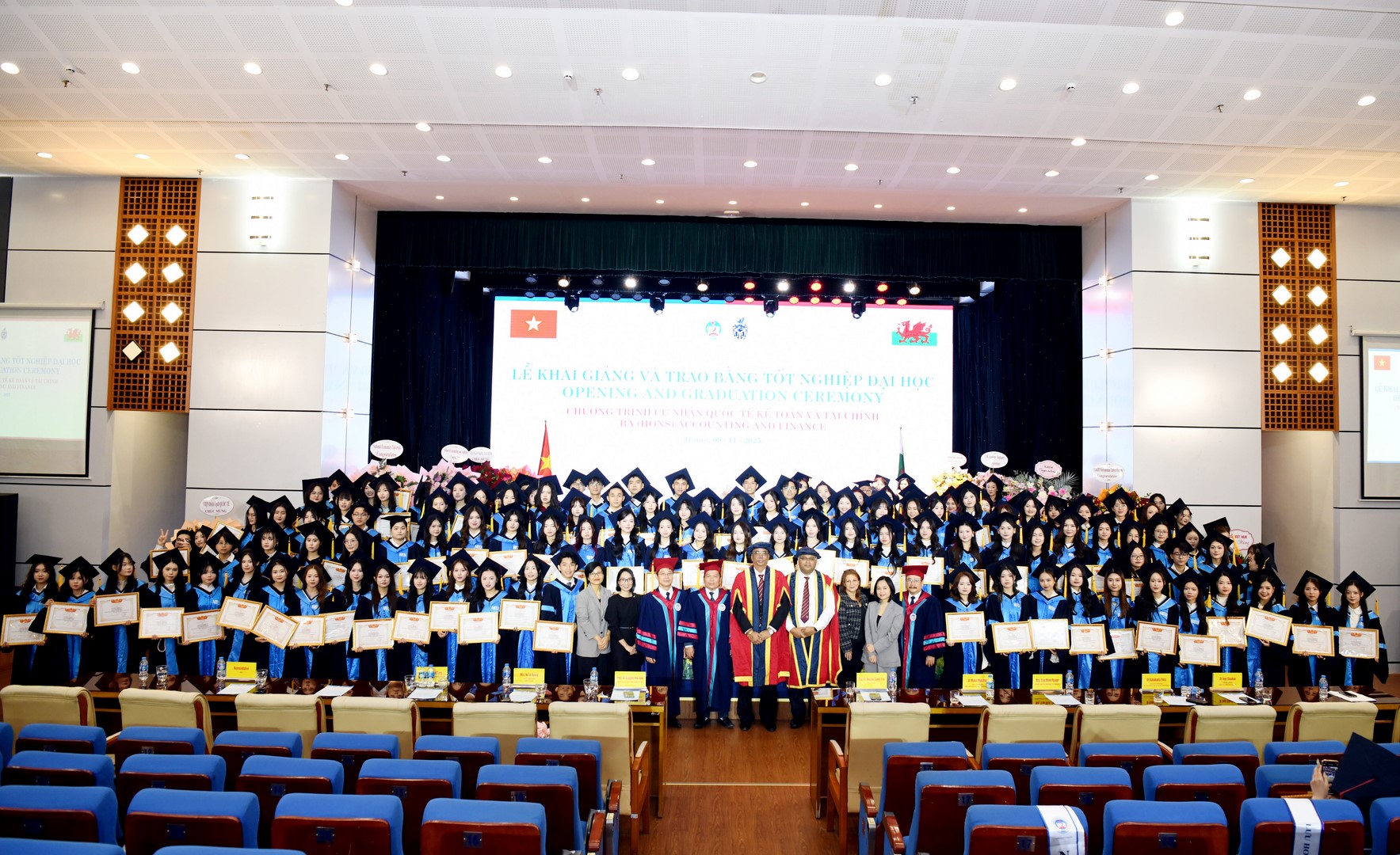 Chiều 09/11/2025, Đại học Kinh tế Quốc dân đã tổ chức Lễ Trao bằng tốt nghiệp khóa 8 và Khai giảng khóa 12 Chương trình liên kết đào tạo Cử nhân quốc tế Kế toán – Tài chính (BIFA) giữa Đại học Cardiff Metropolitan (Vương quốc Anh) và Đại học Kinh tế Quốc dân.