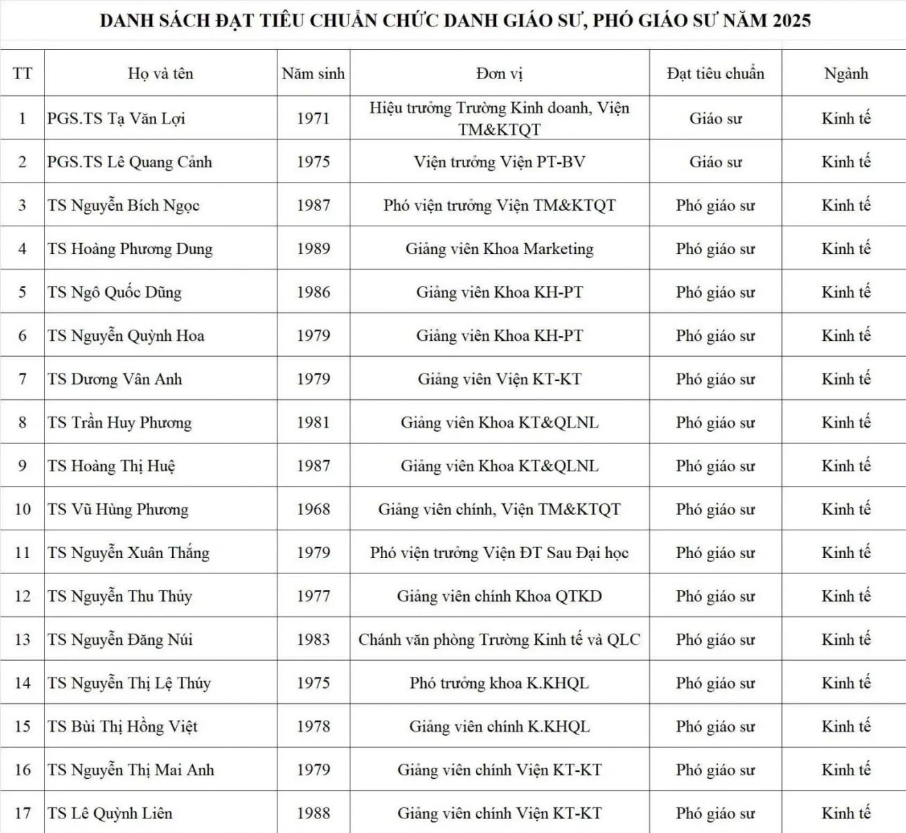 Viện Kế toán - Kiểm toán có thêm 03 nhà giáo đạt tiêu chuẩn chức danh phó giáo sư năm 2025
